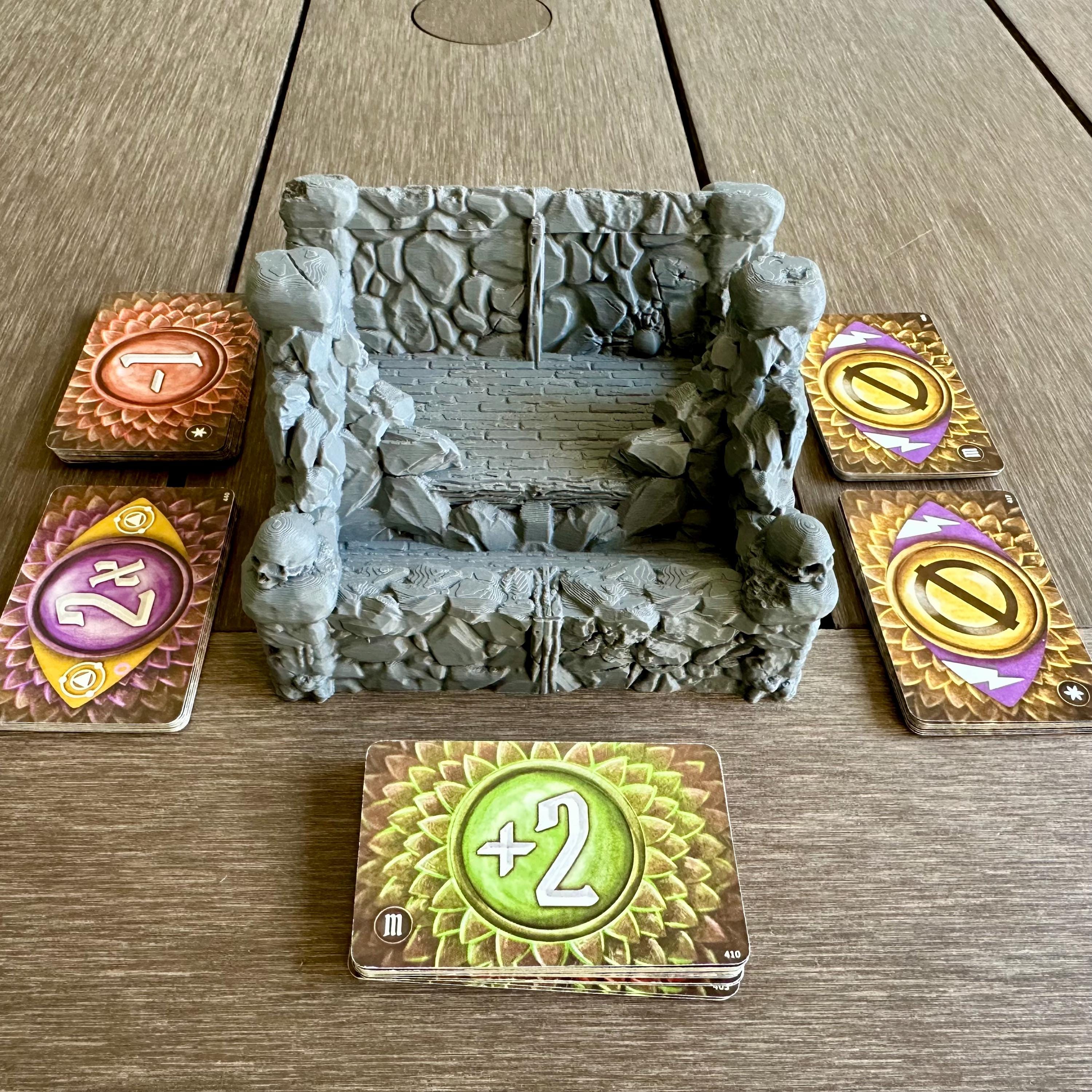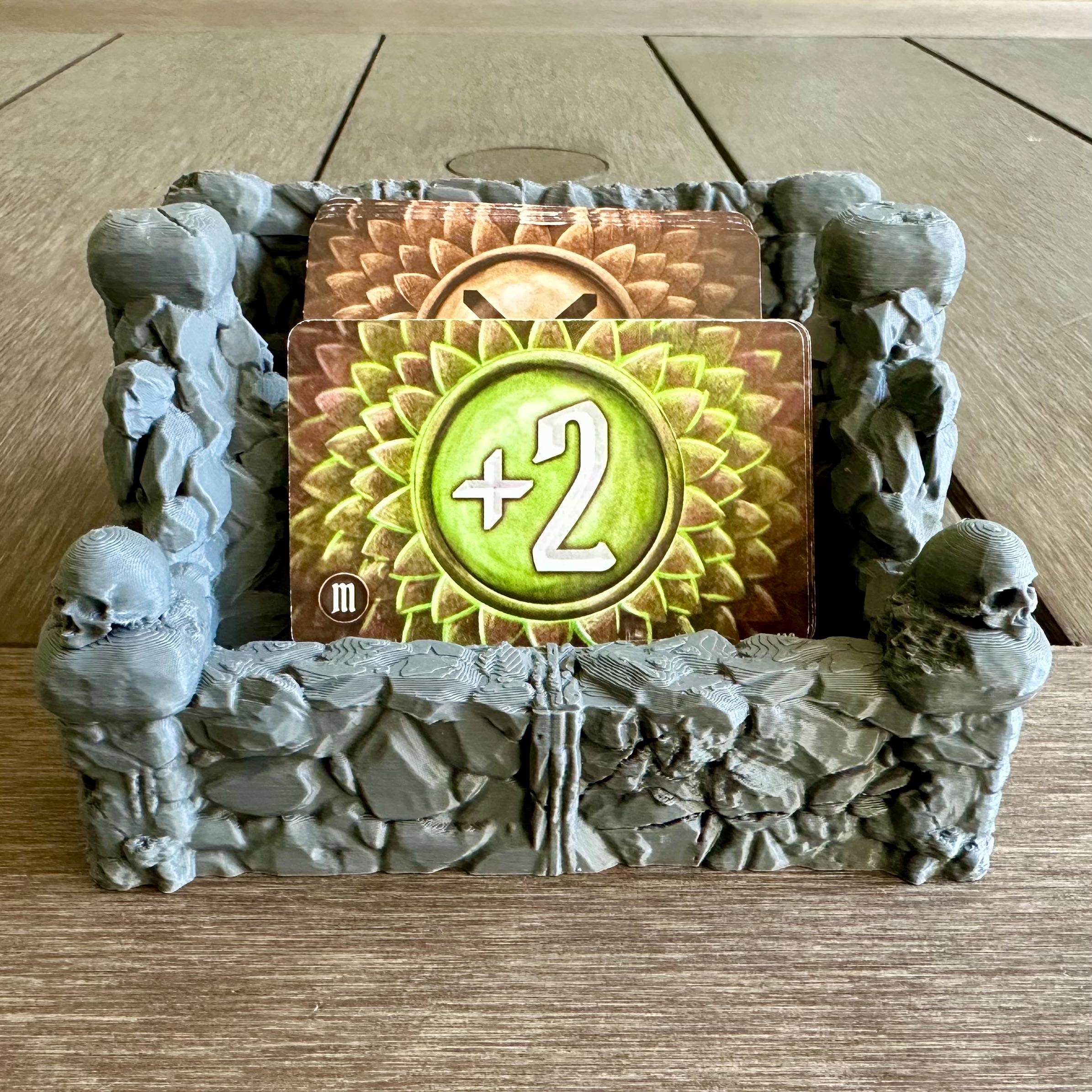 Command the chaos of combat with this Attack Deck Organizer, designed to keep your enemy attack deck elevated and visible during your Gloomhaven, Frosthaven, Jaws of the Lion, Forgotten Circles, and Crimson Scales scenarios.