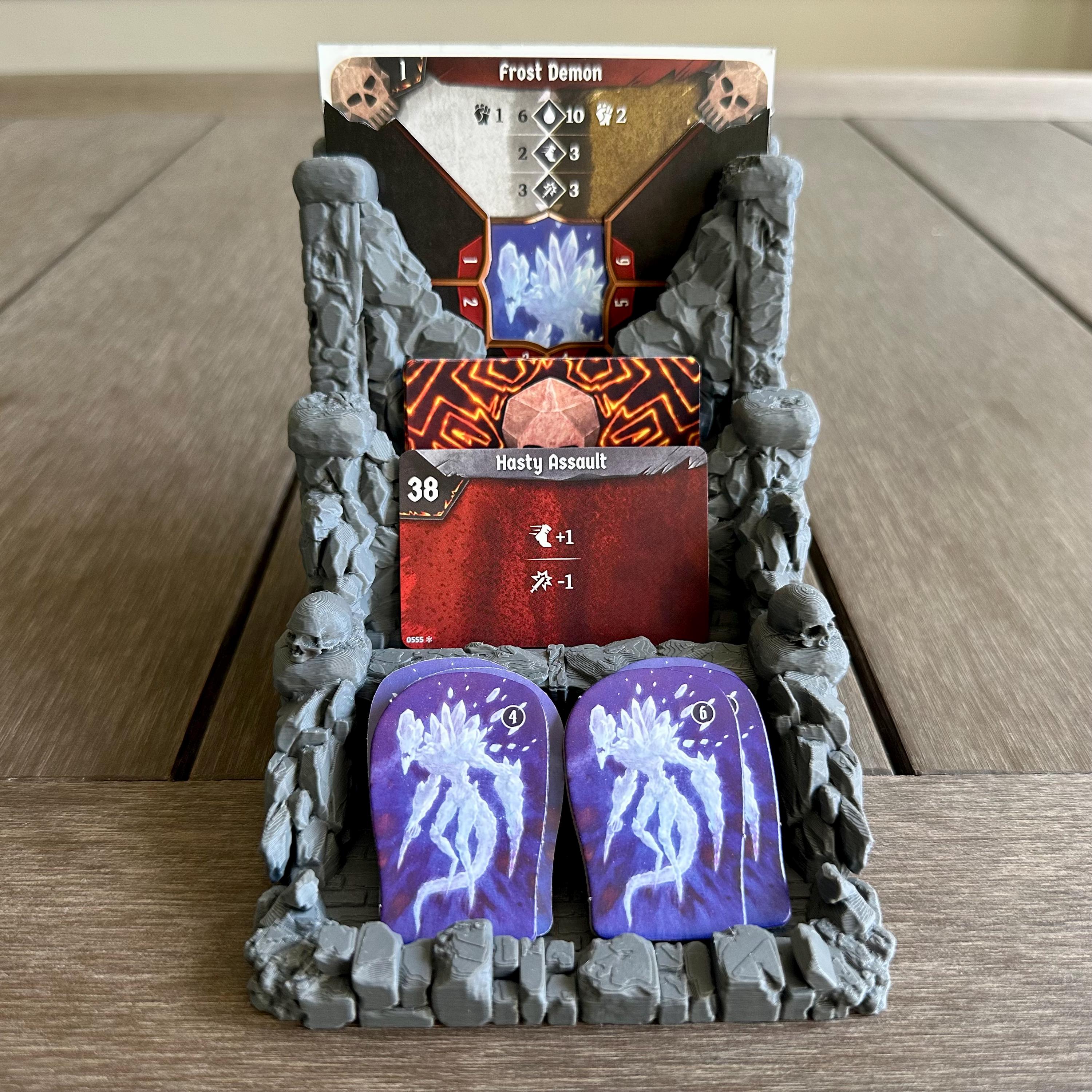 Everything stays in view and at your fingertips — no more cards sliding across the table or hunting for the right standee. Whether you're facing a lone Hound or a swarm of Imps, this stand keeps combat clean and controlled.
