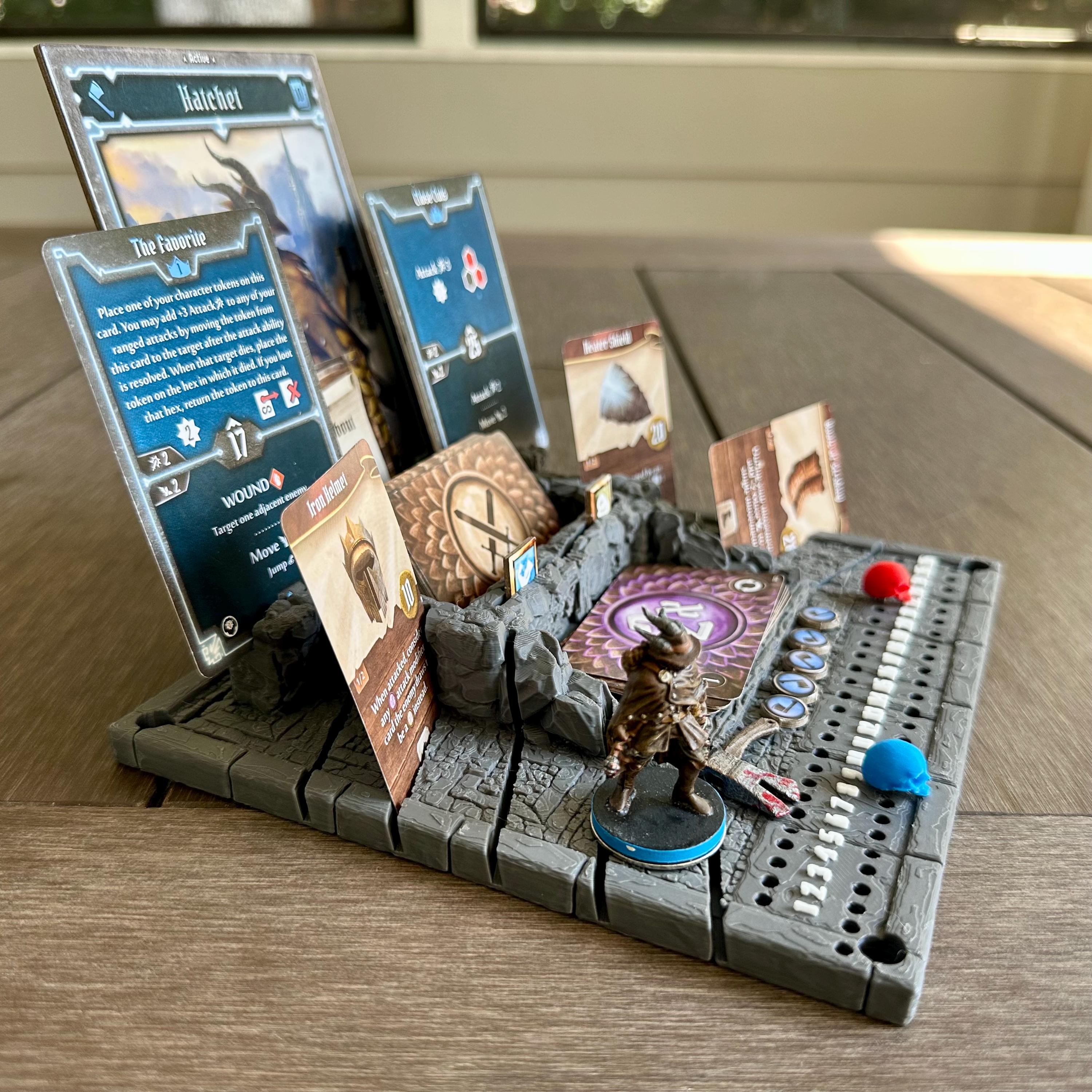 Take command of your character with the ultimate all-in-one storage dashboard for Gloomhaven, Frosthaven, Jaws of the Lion, Forgotten Circles, and Crimson Scales. Whether you’re diving into battle or packing up between encounters, this system keeps everything at your fingertips, and then safely stowed until the next scenario.