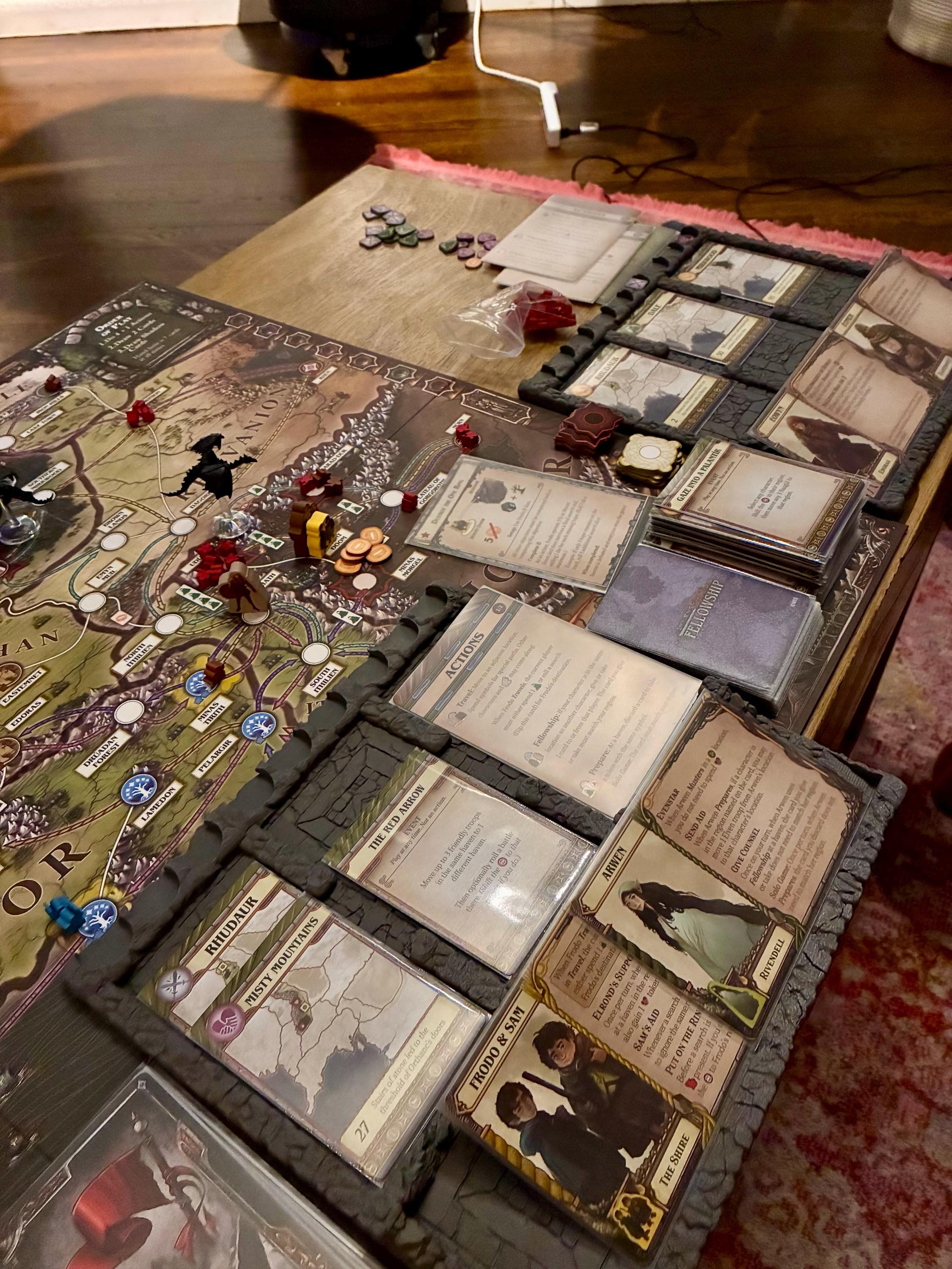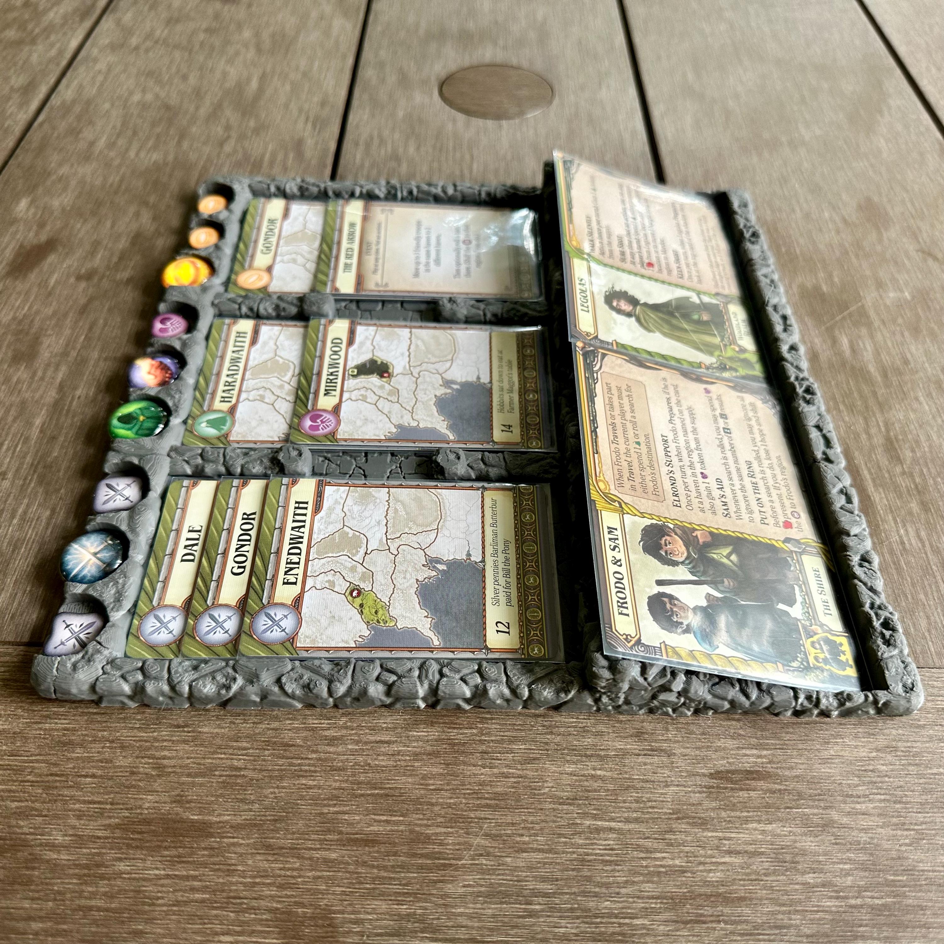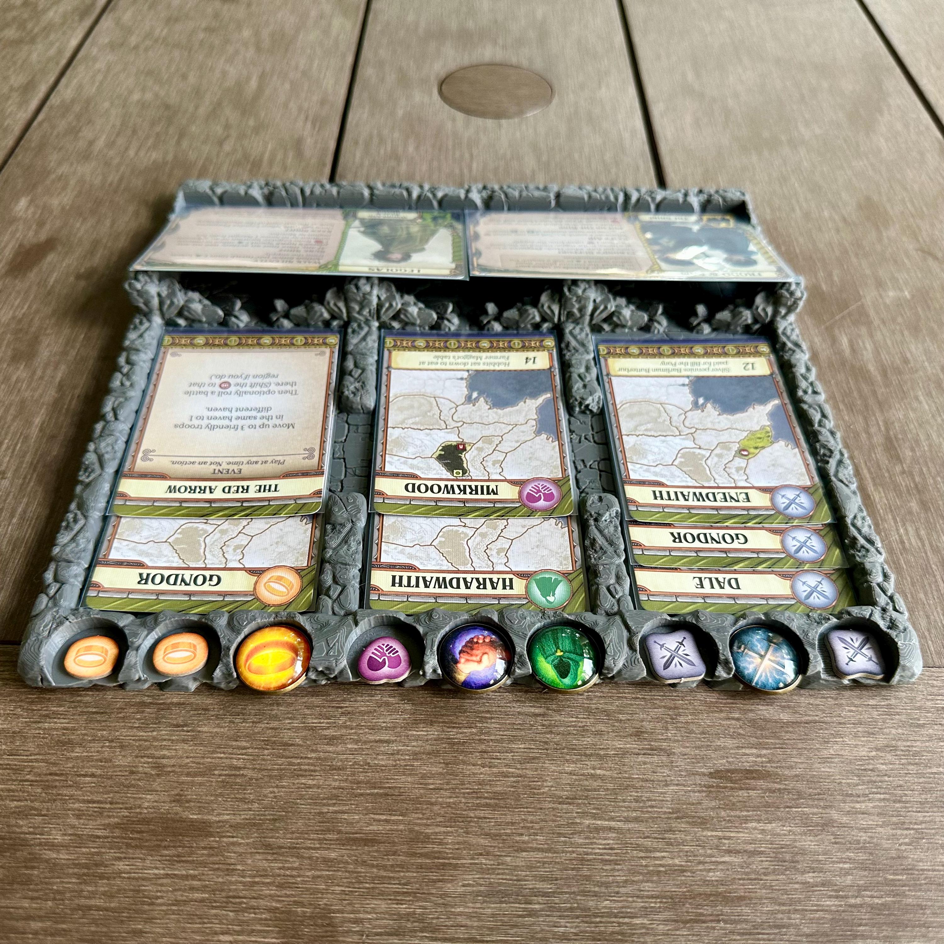 This product consists of unofficial third-party board game accessories designed for use with Lord of the Rings: Fate of the Fellowship. All trademarks, logos, product names, and company names are the property of their respective owners. This product is not affiliated with, endorsed by, or associated with Z-Man Games or Asmodee. “The Lord of the Rings,” “Middle-earth,” and all related names are trademarks of Middle-earth Enterprises, LLC.